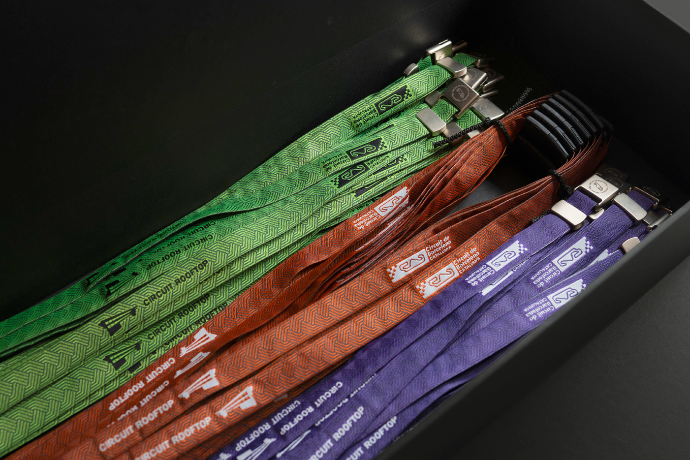 Available in woven or sublimated lanyards, with a standard cardholder, laser-engraved logo, or custom-shaped cardholder.